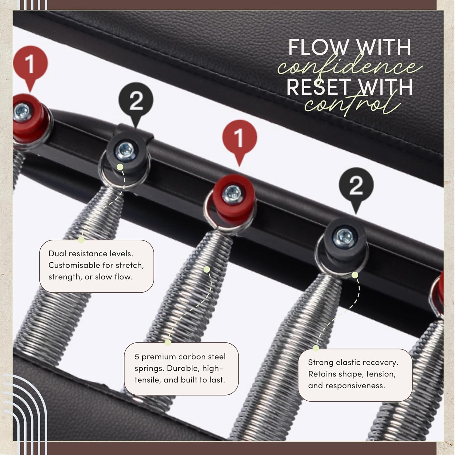 • STUDIO-QUALITY PILATES AT HOME: Build core strength, improve flexibility, and boost endurance with this compact reformer pilates machine all from the comfort of your home. Designed for wellness-minded women and men, this pilates reformer machine features adjustable resistance springs that simulate the experience of professional studio workout equipment.