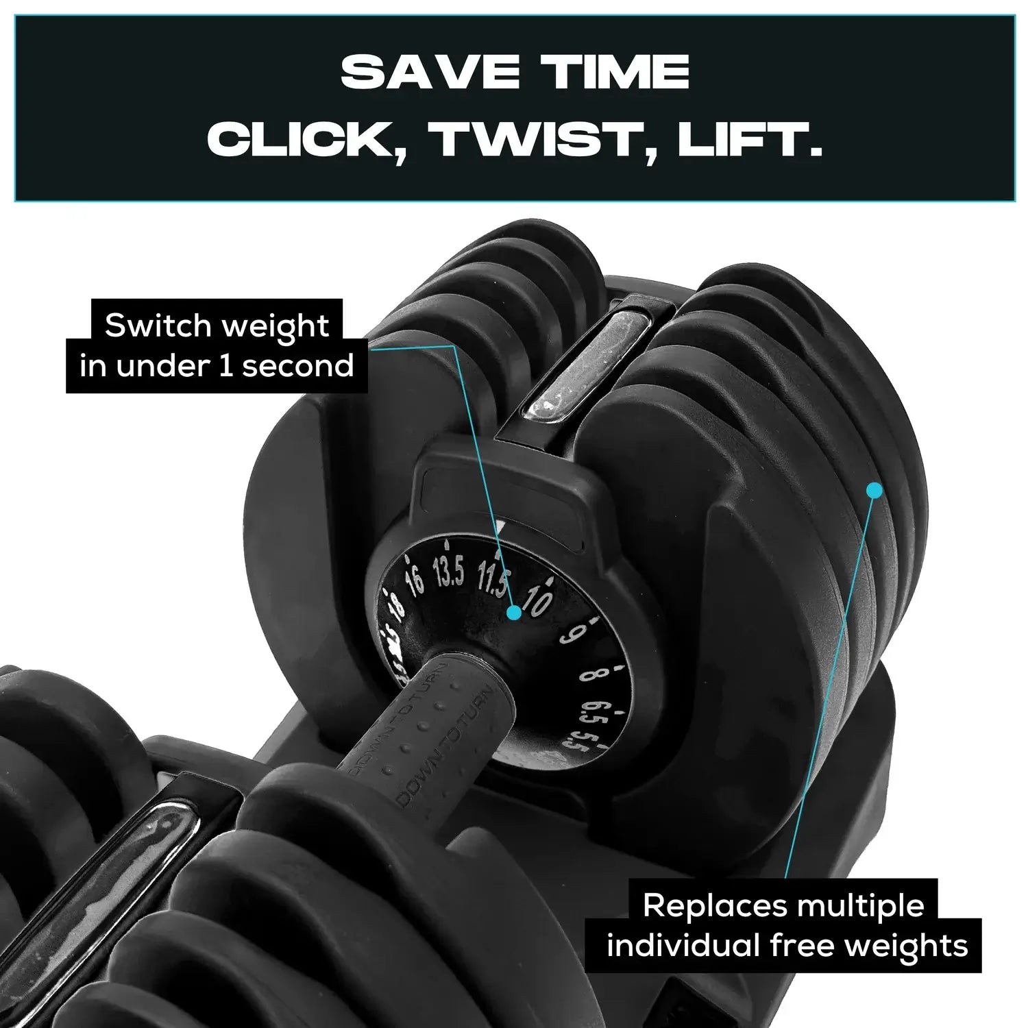 • 1 second adjustment, simply twist the handle to change the weight